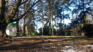 9 holes in a wooded school park |